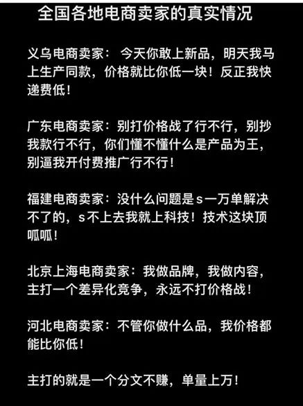 河北保定是北方电商之都,去年冬天保定电商把义乌300块的军大衣打到了50块,一下子火出圈:“没人能和河北人打价格战。别人做电商不亏或者少亏钱,要么打差异化。河北电商一上场:预亏20万。”
