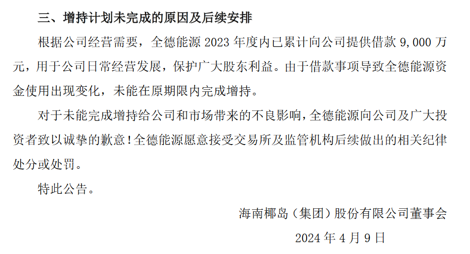 全德能源还曾计划增持海南椰岛不少于1.5%的股份,但最终却未增持1股。