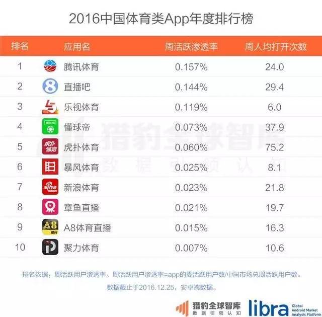 据公开资料显示,暴风体育目前每天更新的内容超过2000条,而今日头条能够取得今天的成绩正是依靠海量的信息源以及开放平台的支持,据猎豹全球智库2016中国体育类App年度排行榜显示,目前暴风体育排名第6,这对于一个去年9月才发布的App来说确实不易。