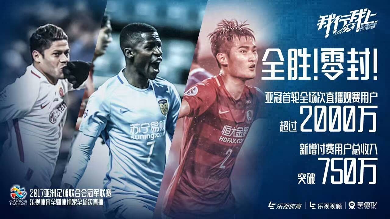 如果单拿最近的亚冠联赛来看,由于乐视体育拥有2017-2010年亚足联旗下所有赛事在中国大陆地区的全媒体版权,其取得了如下的成绩。官方披露首轮直播观赛用户超2000万,新增付费用户总收入突破750万,虽然这笔收入对于乐视体育来说并不算什么,但是却足以说明独家版权对于互联网+体育的重要性。