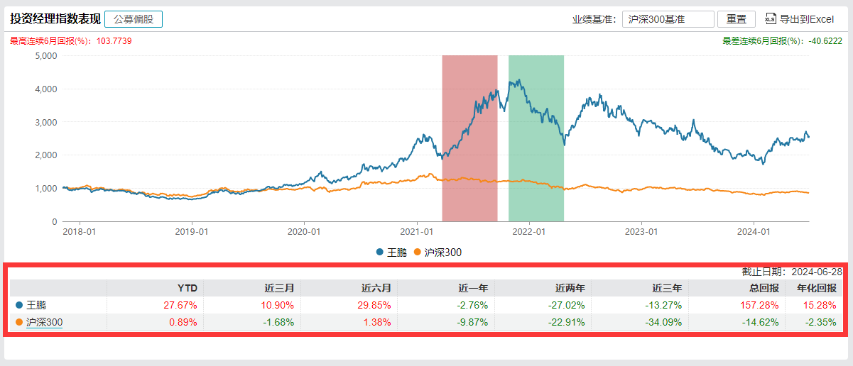 在王鹏在管基金中,其任职时间最长的为宏利转型机遇A,自2017年12月19日起任职至今,管理时间已超过六年半,该基金也是其管理规模最大的一只产品,为普通股票型基金。截至今年一季度末的规模约38.78亿元。从任职回报来看,王鹏在宏利转型机遇A的任职回报高达158.56%,年化回报约15.66%,在其在管产品中任职回报率居首,回报排名3/254。截至2024年6月28日,宏利转型机遇A年内净值回报率为26.01%,同类排名1/935,位列榜首。