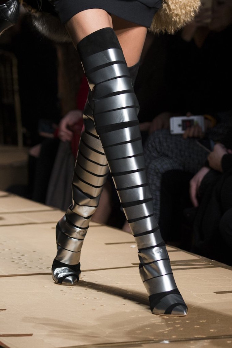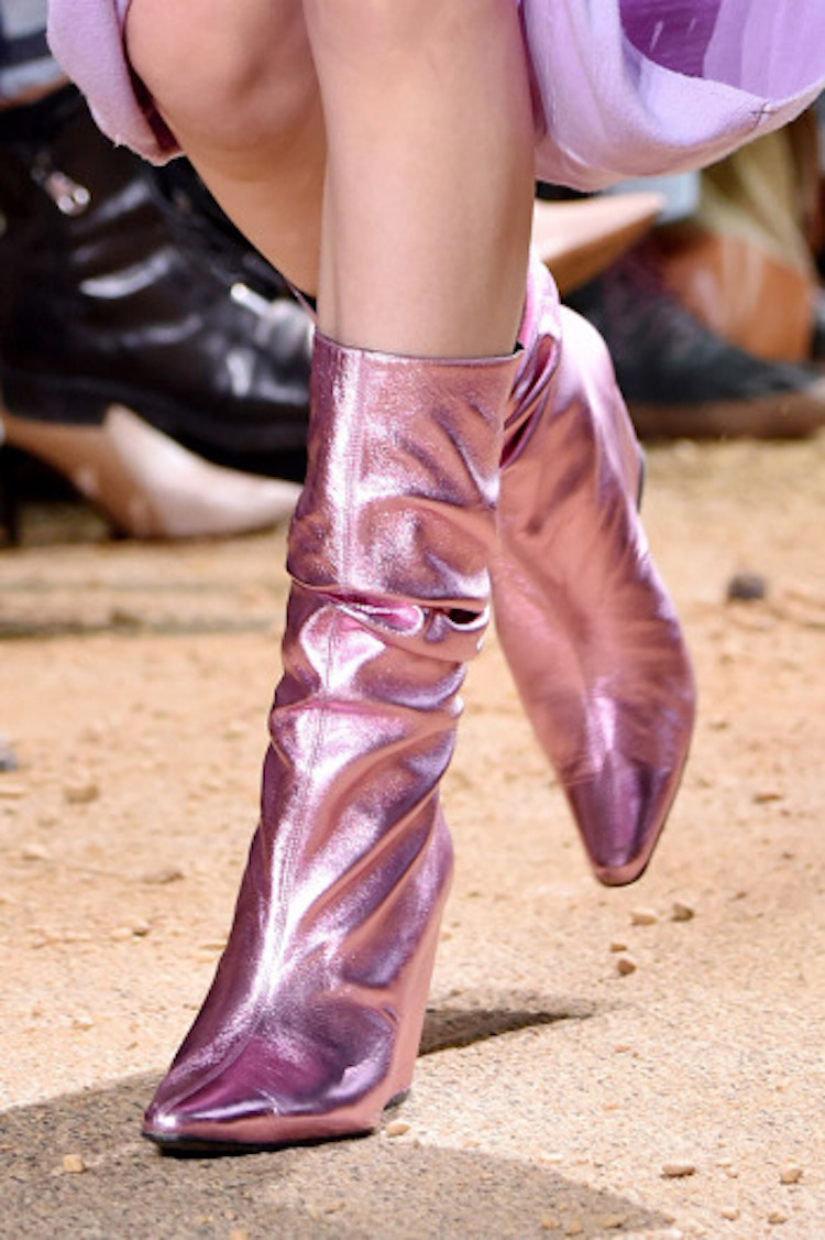 金属未来感近几年十分流行,17年秋冬秀场也好几次见到了金属色的靴款。