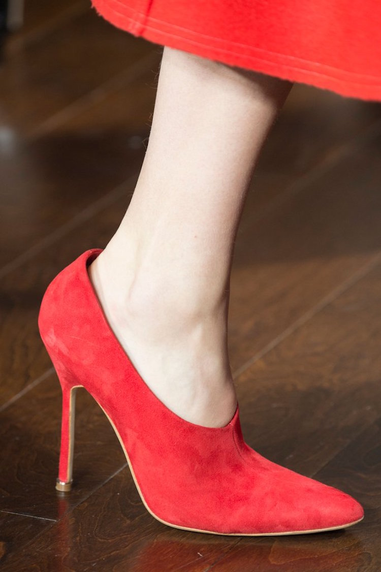 会露出脚趾边缘的浅口高跟单鞋已经流行了好几年,不过今年秋冬Jason Wu的包住了大半个脚背的高跟单鞋看起来倒是更为的优雅。并且,部分男士表示觉得浅口高跟鞋会露出指缝其实并不好看。