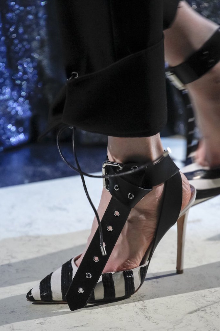 Monse 17年秋冬秀场皮革绑带高跟鞋也是时装周上的一大亮点。对于绑带鞋作出的新的改良不知道是不是基于《五十度灰》第二部给予的灵感。