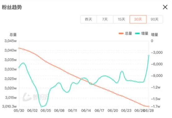 6月27日,东方甄选停播一天。6月29日晚,官方发布声明称从来没找政府要过宣传费,也坚持不向任何企业、商家收取所谓坑位费用。蝉妈妈数据显示,东方甄选直播间粉丝总量自5月30日的3041.1万人,至7月1日减少了约38万人。自6月起,其股价一路下跌,截至上周港股收市,每股股价为12.62港元。种种迹象来看,“去董宇辉化”后的转型调整并不顺利,阵痛仍在持续。