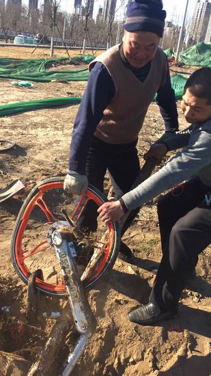 在王硕看来,类似的虐车行为并不少见,且样式各异。此前他从河中“捞”单车,从树上“摘”单车,现在又从土中“拔”单车……王硕常和同事们讨论这些奇葩现象,私藏车辆属于利己不利人,为自己图方便尚能理解;但虐车属于不利己不利人,“这些人怎么想的我们也很纳闷”。