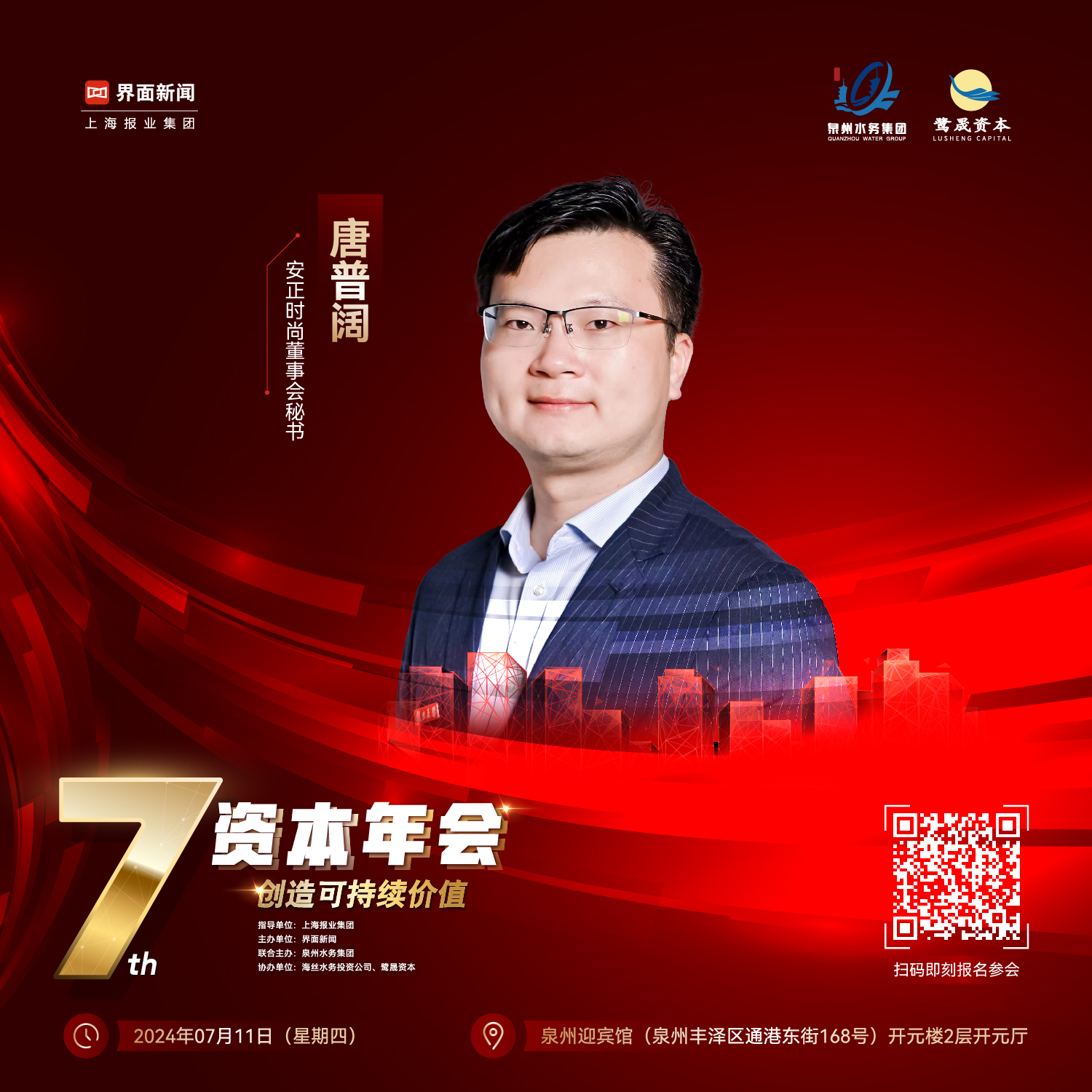 由上海报业集团作为指导单位,界面新闻主办、泉州水务集团有限公司联合主办,泉州海丝水务投资有限责任公司、泉州鹭晟私募基金管理有限公司作为协办单位【2024资本年会】确认将于7月11日(星期四)在泉州迎宾馆(泉州丰泽区通港东街168号)举行。(点击“2024资本年会”即刻锁定年会参会名额)