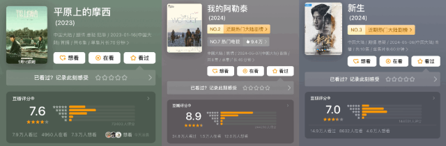 短于12集的迷你剧出现了:去年6集的《平原上的摩西》开始进行试验,今年8集的《我的阿勒泰》和10集的《新生》,也都收获了不错的观众反馈。