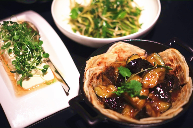 树上掐的新鲜花椒叶轻微脱水,裹上面糊被炸得金黄,咬下去满口酥香,其中还带着茎叶的鲜甜和花椒的微麻;土鸡蛋被打散为蛋液,下入被锅中用大火煎至两面金黄,咬下去非但不油腻,反而是满口鸡蛋的软嫩鲜香和小葱的四溢清香;茄子滚刀切块后加调料在铁板上红烧,表皮微焦内部软糯,再就着刚出锅的烙饼入口,满足感爆棚;老母鸡切块、板栗拨皮一起放入小锅,加入葱姜蒜和调料小火慢炖后收汁出锅,就连鸡肉中都带有板栗的微甜……这样一桌美食,再配一碗香喷喷的白米饭,家常菜的舒心惬意会让你忘了自己是在一间五星级酒店就餐。