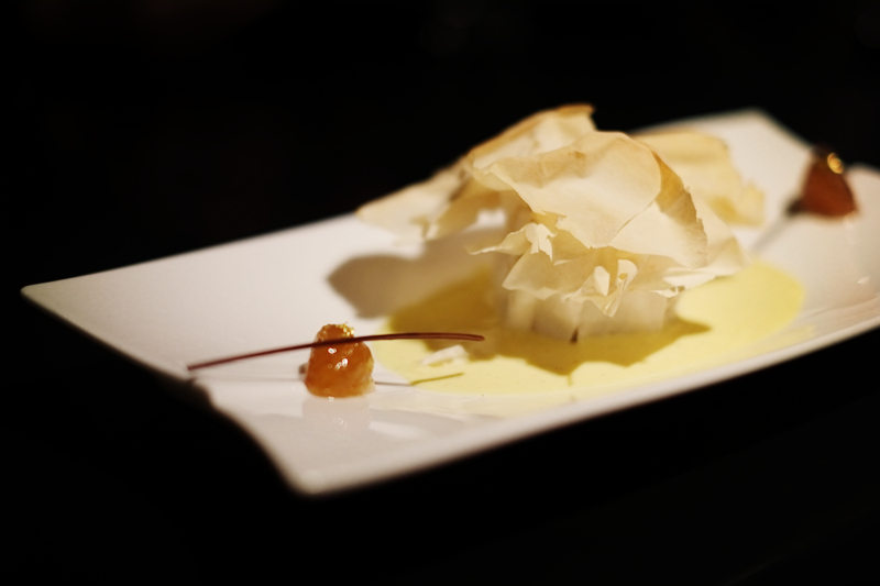 不过,怀柔的本地山货经过主厨的料理,又以西式甜点的形式呈现在盘中:板栗去壳后经过烘烤,加上金箔和酥皮,被做成栗香十足的栗子蛋糕;山楂切开并去核,加入肉桂粉上锅熬制成山楂羹,酸香可口而又芳香温暖;去皮后的核桃仁经过烘焙为核桃塔,浓厚的香甜中又夹着核桃的口感和香脆。有了这三道甜品,怀柔菜顿时又显得精致洋气。