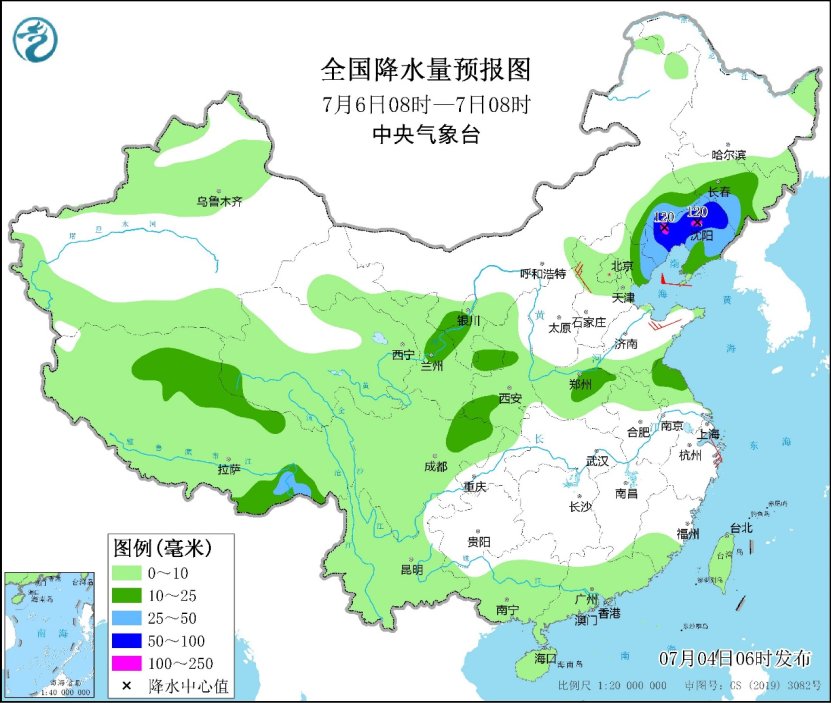 5日,强降雨将主要集中在华北南部、黄淮及陕南等地,大部地区有大到暴雨,河北东南部、河南北部、山东西北部有大暴雨(100~200毫米)。6日,强降雨转移至河北东北部、内蒙古东南部、辽宁、吉林南部等地,大部地区有大到暴雨,内蒙古东南部、辽宁中部局地大暴雨(100~120毫米)。