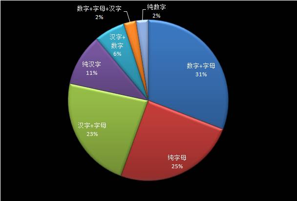 根据对近700款车型名字组成分析,可以分为7种组合,以下为各组合的分布情况: