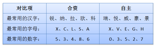 另外,两者最常用的字母均为X,其余字母则各不相同,合资喜欢用C、L、S、A,自主则喜欢用V、E、G、H。