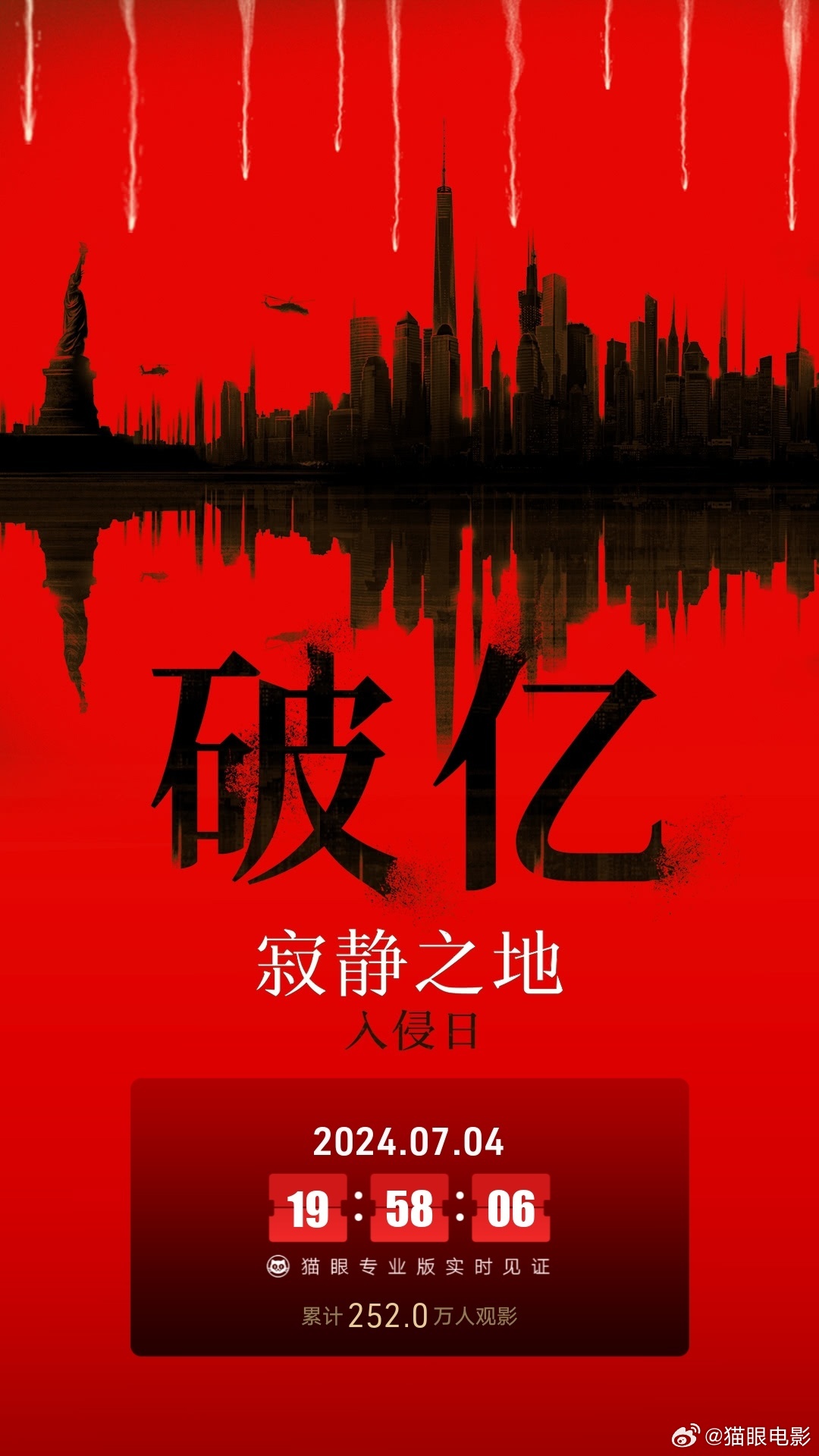 据猫眼专业版数据,电影《寂静之地:入侵日》上映7天,总票房破1亿。
