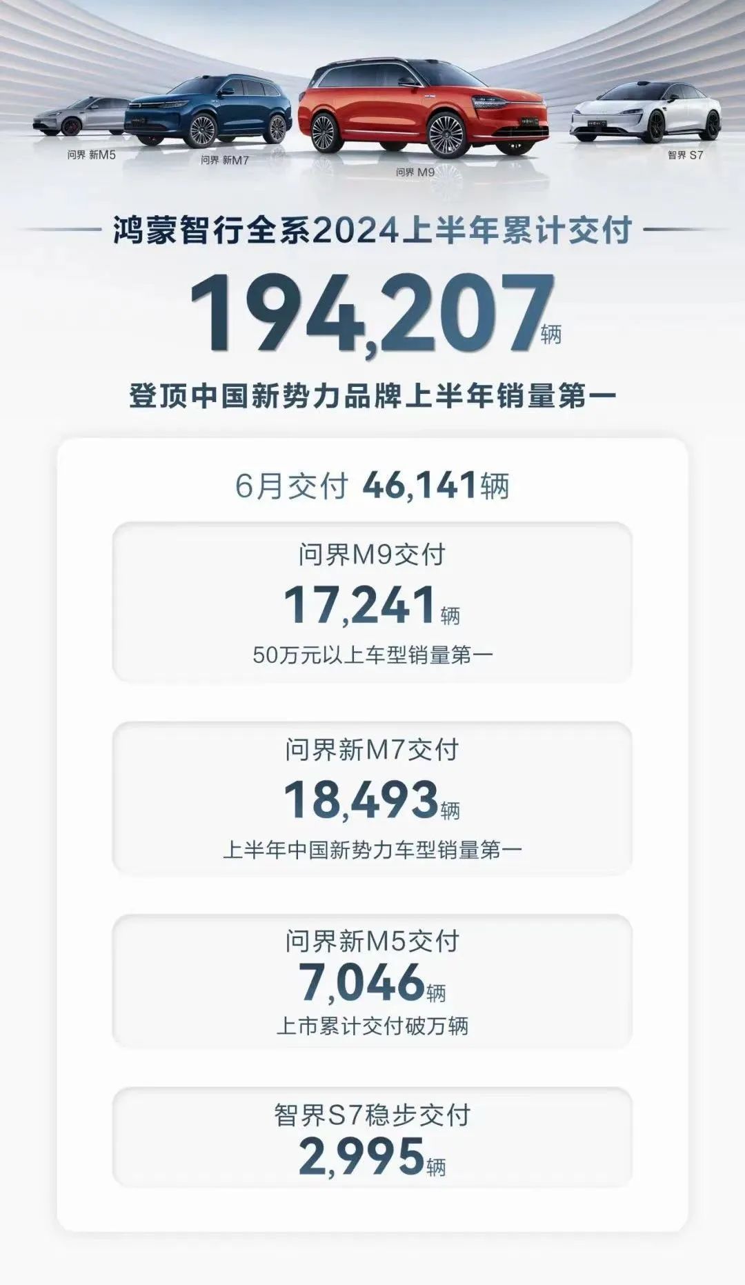 不仅如此,在鸿蒙生态内,问界销量也是一马当先,远远超过智界(6月销量6015台)等竞争对手。