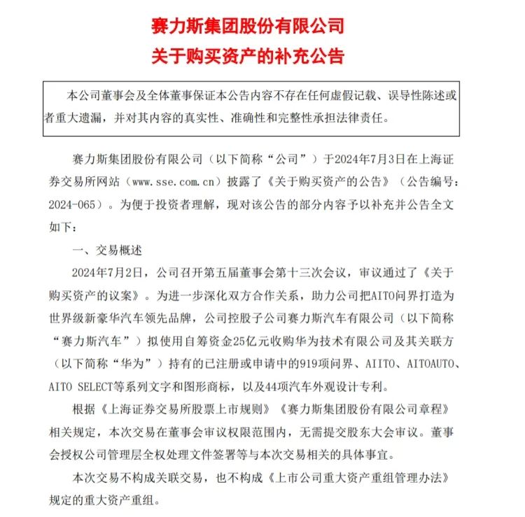 赛力斯对问界品牌的收购公告十分清晰,但有关这次收购原因的讨论,却显得异常复杂:问界品牌用得好好的,为什么要花钱收购?这是否代表双方合作力度的减弱?