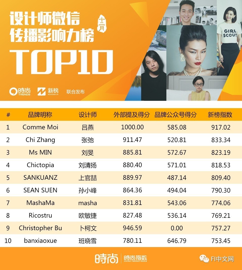 榜单由时尚集团与移动端全平台数据机构新榜NEWRANK独家合作,由“中国 时尚指数”提供学术支持,是现存的、唯一的全网监测设计师品牌排行榜。
