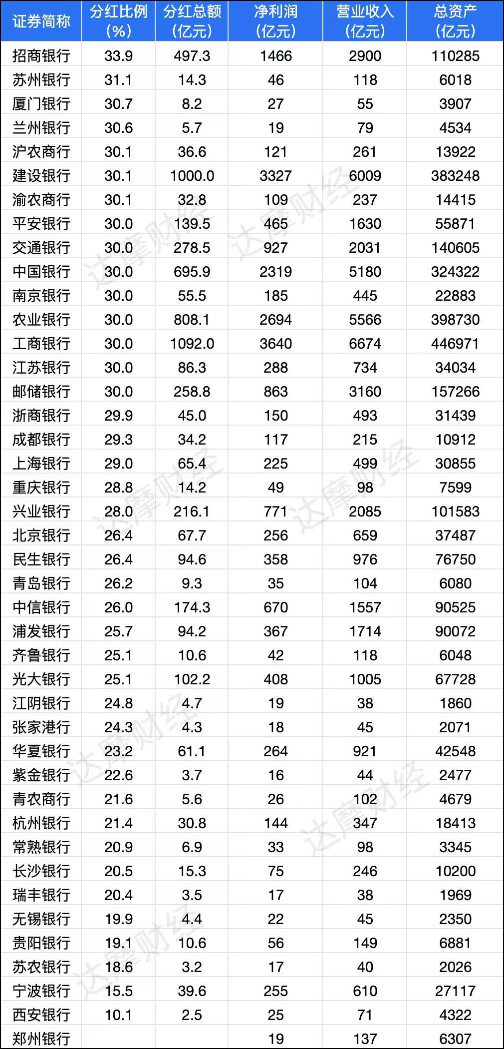 值得一提的是,在2023年度现金分红比例低于20%的上市银行中,大多数资产规模并不大,宁波银行是唯一一家资产规模超过25000亿元的银行,其资产规模是西安银行的6倍之多。