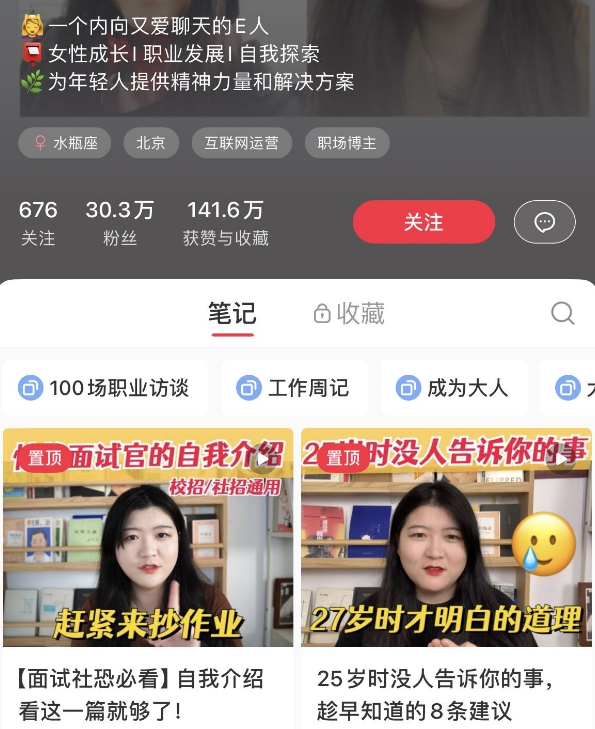 重返职场后,陈曦并没有完全放弃个人账号,只是换了新的内容——“gap后找工作心得”。李然开始分享自己10年工作生涯中的职场经验,谷子选择的内容则是读书笔记和个人感悟。只不过,流量锐减是必然。