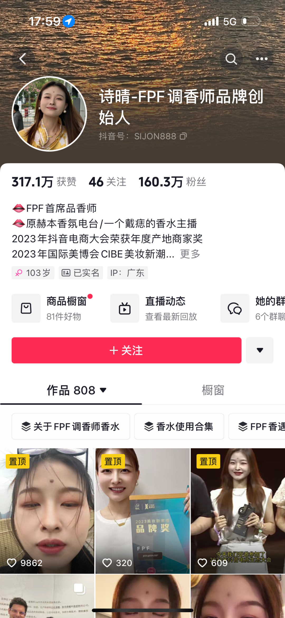 截至目前,“诗晴-PFP调香师品牌创始人”账号狂揽160万粉丝,并建立了强大的品牌信任感和影响力,成为了销售的直接推动力以及品牌形象和调性的重要塑造者。