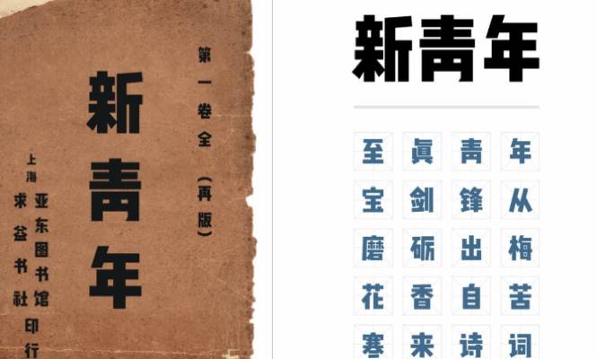 源自二十世纪的美术字设计,结合了包括创刊于 1915 年的《新青年》杂志书名字标的设计风格。字型上融合新旧两种元素,将忆古情结表现得淋漓尽致的同时,又能相得益彰地展现出现今社会所需的极强表现力。