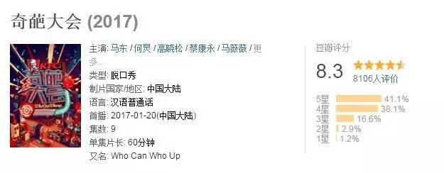 豆瓣得分8.3,知乎、微博引发强烈话题性讨论,口碑与点击量双丰收;IT大佬李开复、社会学家李银河、微博大V谷大白话……当这些看似毫不相关的人“汇聚一堂”;还有马东、高晓松、蔡康永与何炅四个很会说话的人坐在一排的时候,《奇葩大会》作为为《奇葩说》第四季选“奇葩”的先导节目,这次似乎有些不同了。
