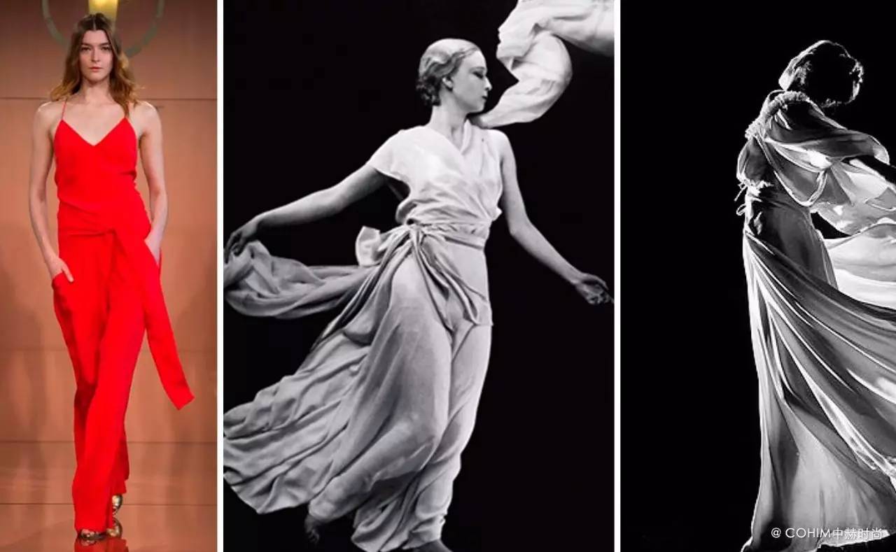 就像我们前面所提及的那样“回归希腊”MADELEINE VIONNET以古希腊为灵感悬垂式女装并进行改良,尖底摆的手帕式裙子是她的代表作。