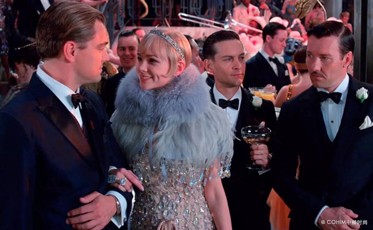 从电影《了不起的盖茨比》不难看出20`s的服装风格,奢华萎靡,这个年代的钱太好赚了,其在服装上的表现就是“把钱都穿在身上”。
