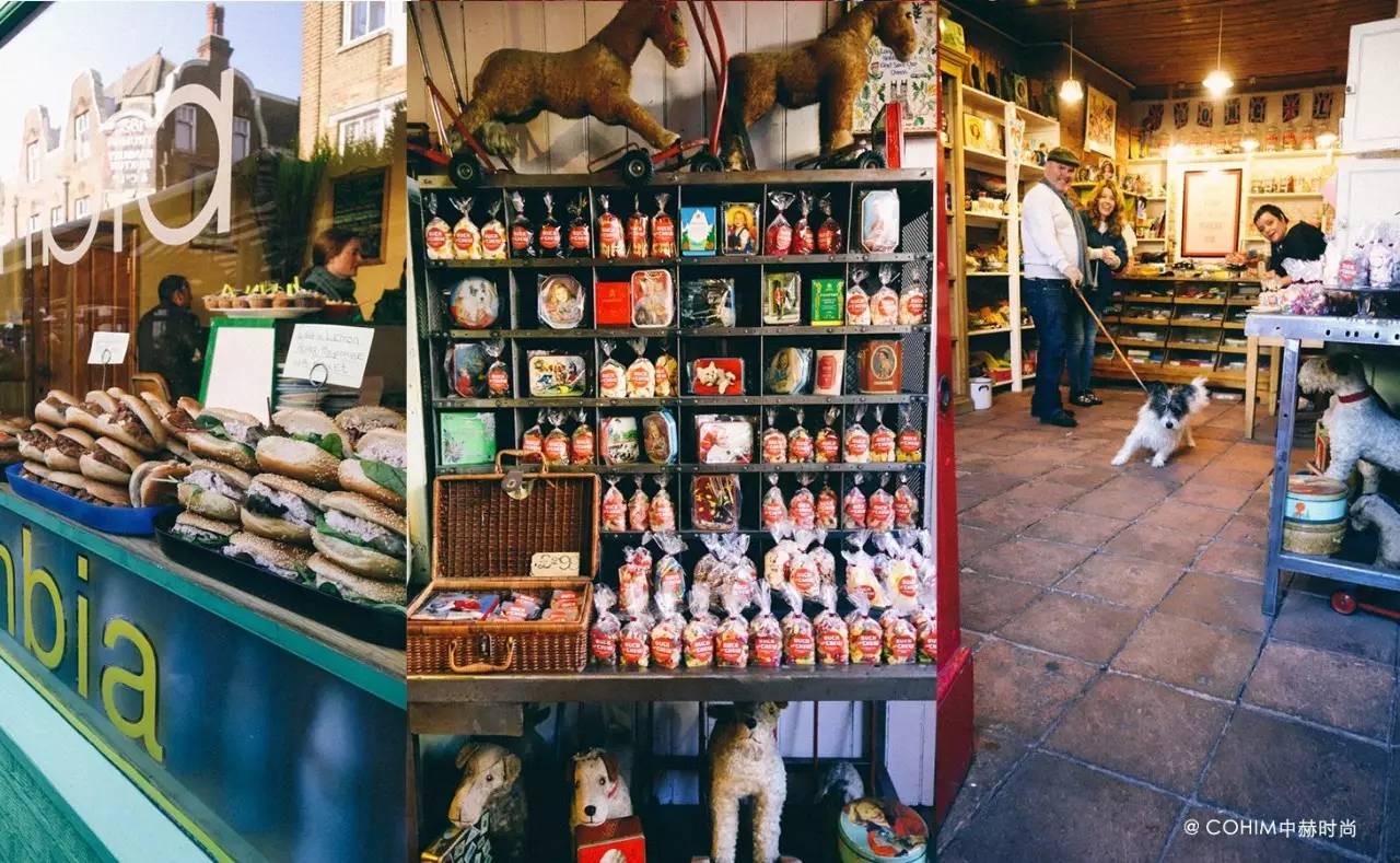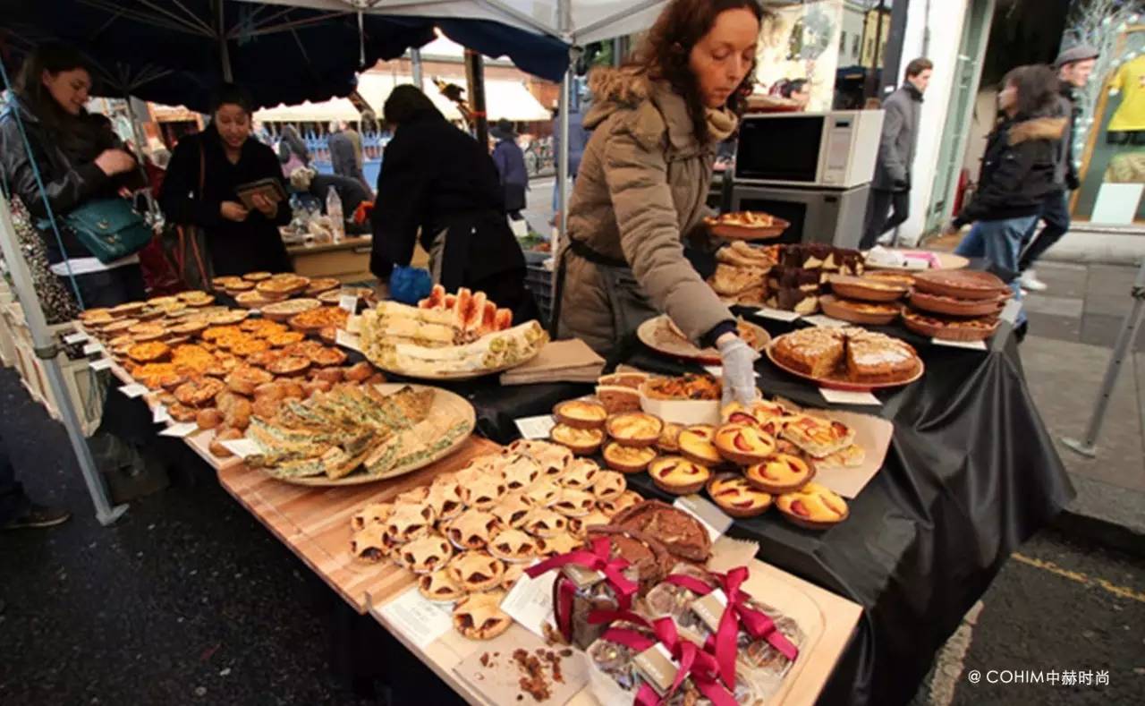 谁说英国只有汉堡和薯条,这个市集里的每一个店主都很像一位品味卓越的艺术家,所谓的把生活过成诗不过如此:无可挑剔的背景里,连阳光下慵懒的猫咪都成成为一道风景;市场的店主会把水果蔬菜按照色系陈列的错落有致,能懂得哪种脐橙黄搭配哪种牛油果绿会更打动人,更可以把造型各异的面包和碗盘铺满一面墙而不显得累赘和拥挤。