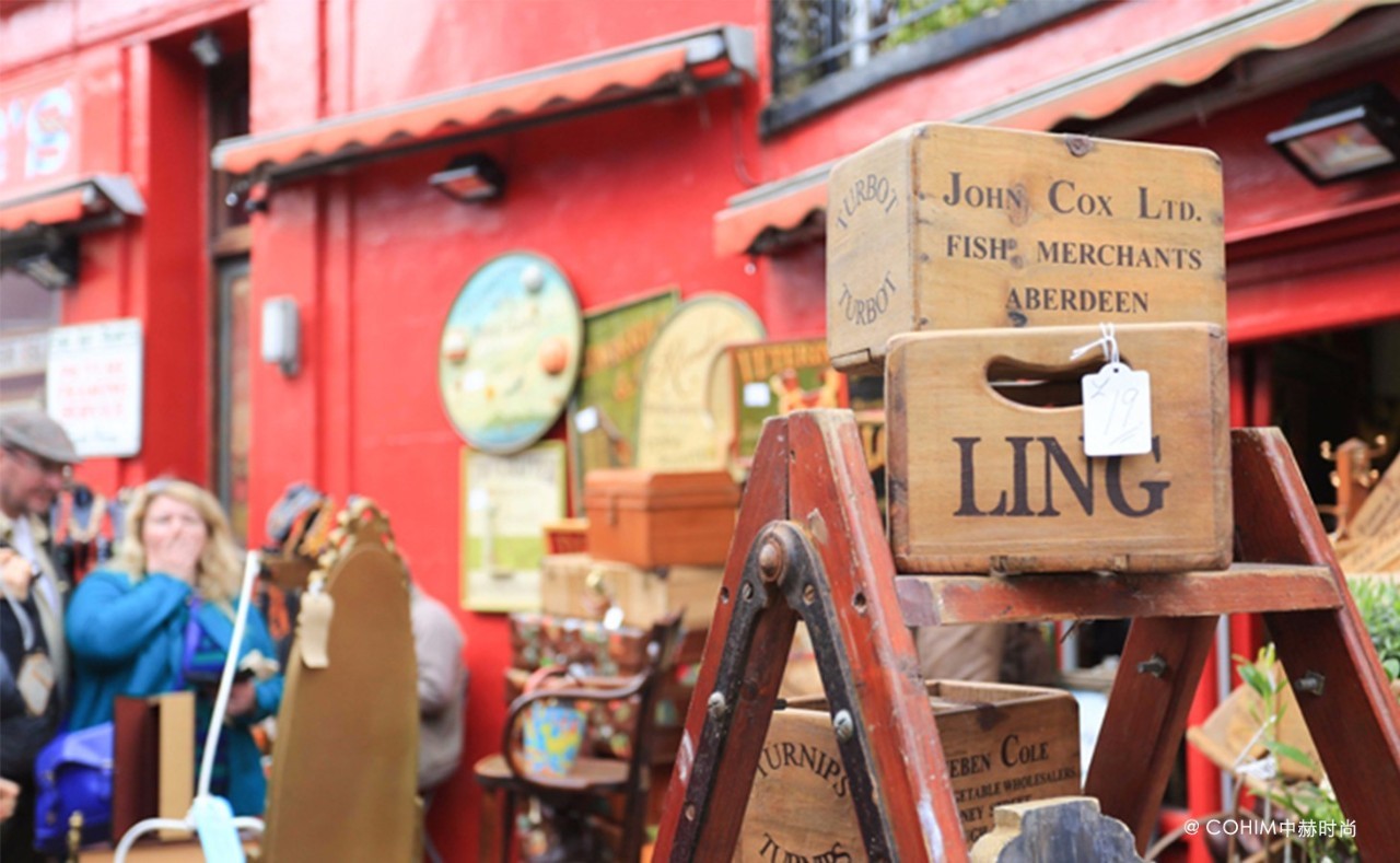 这里更是vintage爱好者朝圣地,聚集了众多做生活方式的vintage买手店。这里的vintage shop不像英国其他的二手店那样邋遢,从店内家具的布置到摆放的货品都很有档次。目光随着一件件货品流过,很容易发现LV的旧旅行箱,Chanel首饰,Gucci的旧包等;再仔细看看还可以找到Armani,Bally等名牌的复古货品。此外,这里也有很多很好看的老款晚装、连衣裙和手包之类的。