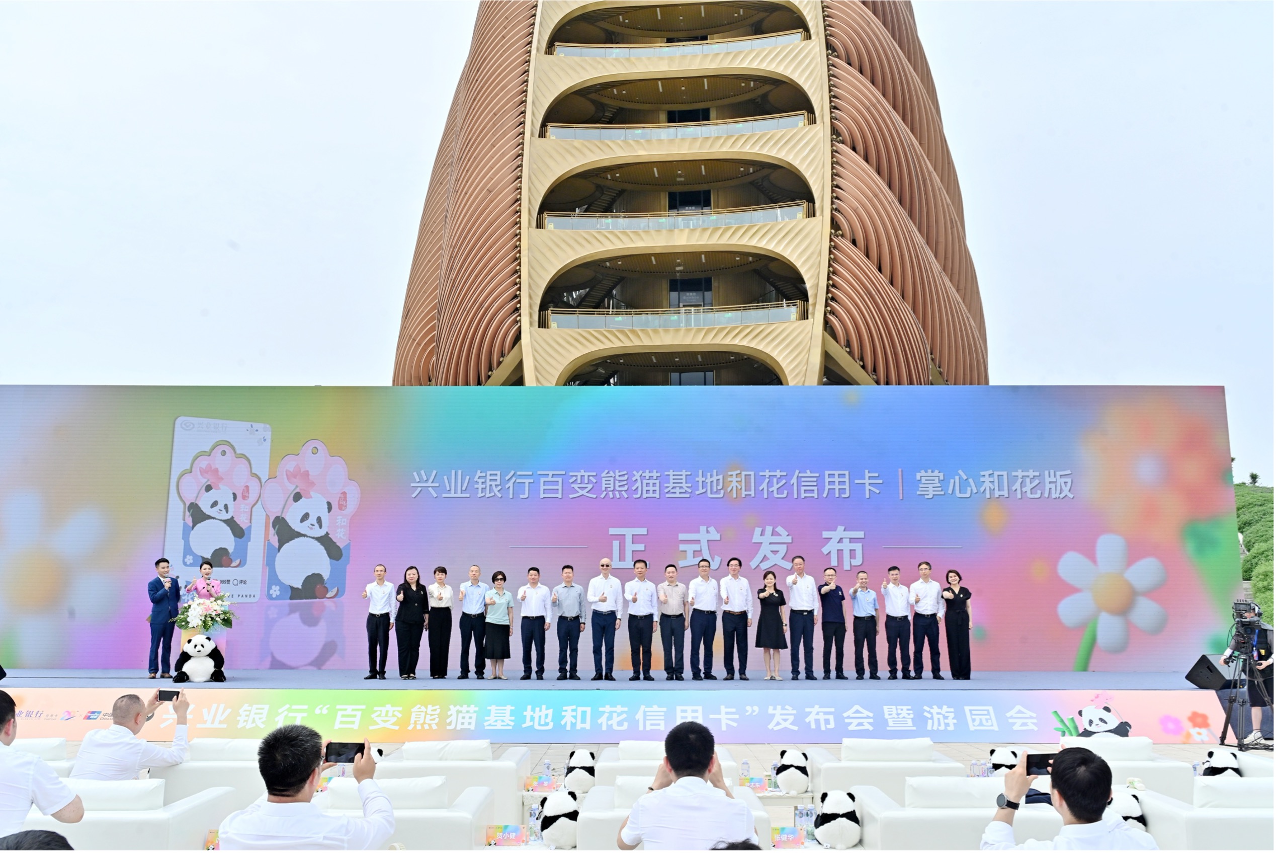7月4日,兴业银行在成都大熊猫繁育研究基地熊猫塔广场成功举办“百变熊猫基地和花信用卡”发布会暨游园会,吸引了众多“和花”粉丝到场围观打卡,当日发布的“百变熊猫基地和花信用卡”配套特色卡面——“掌心和花版”正式面市。