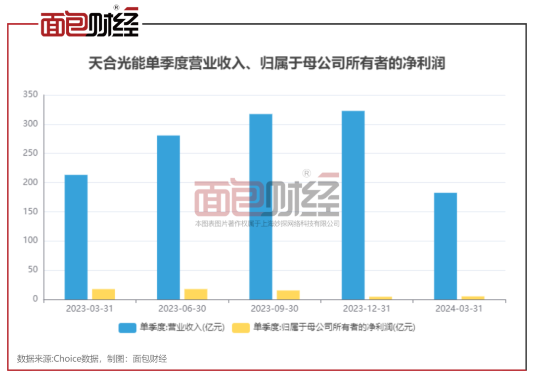 2024年一季度,天合光能实现营收182.56亿元,同比下降14.37%;归母净利润5.16亿元,同比下降70.83%。公司表示,受光伏产业链供需影响,公司组件产品售价同比下降,光伏组件盈利能力有所下降。