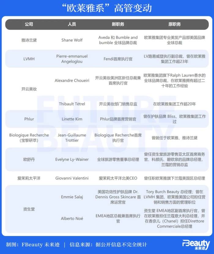 进一步梳理发现,欧莱雅系的高管或许是美容巨头们最爱“挖”的人才。