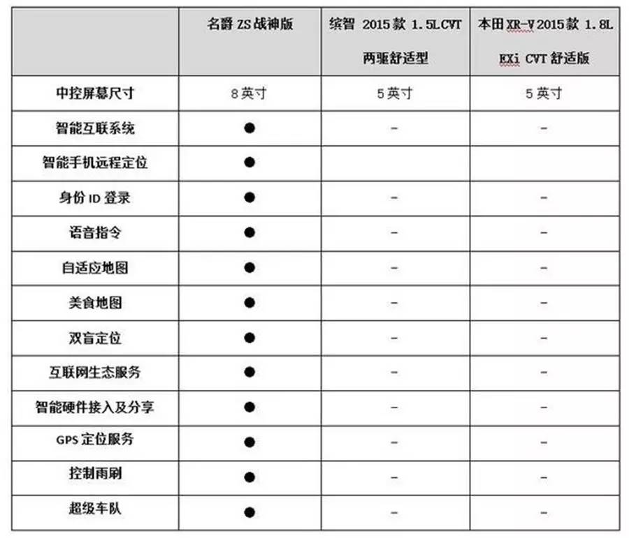 预售价才11.98万的旗舰版车型名爵ZS战神版携被年轻人誉为“最大的天窗、最大的屏、最强的玩家、最牛的车”称号让一众传统SUV瑟瑟发抖。那么,这款初出茅庐的名爵ZS战神版叫板的底气到底在哪里,上述的称号是否属实,小编就选取市场上同样主打年轻消费者的热门SUV车型广汽本田缤智 2015款1.5L CVT两驱舒适型(官方指导价13.68万元,以下简称缤智)和东风本田XR-V 2015款 1.8L EXi CVT舒适版(官方指导价14.98万元,以下简称本田XR-V),来个全方位PK,用事实说话。