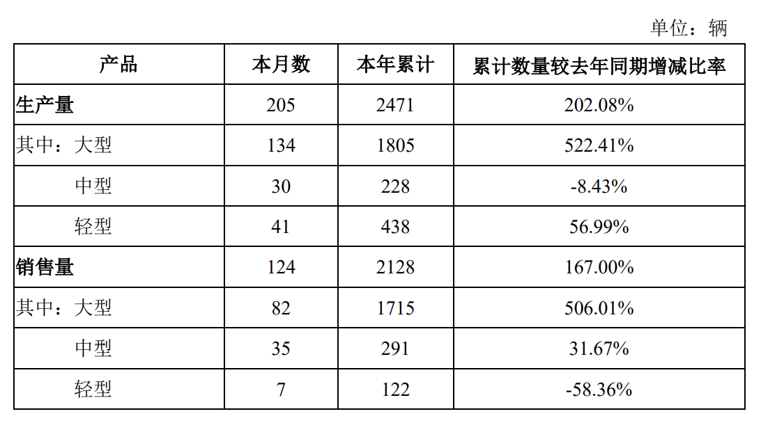 *ST亚星公告,2024年6月销售量124辆;本年累计销量2128辆,同比增长167%。