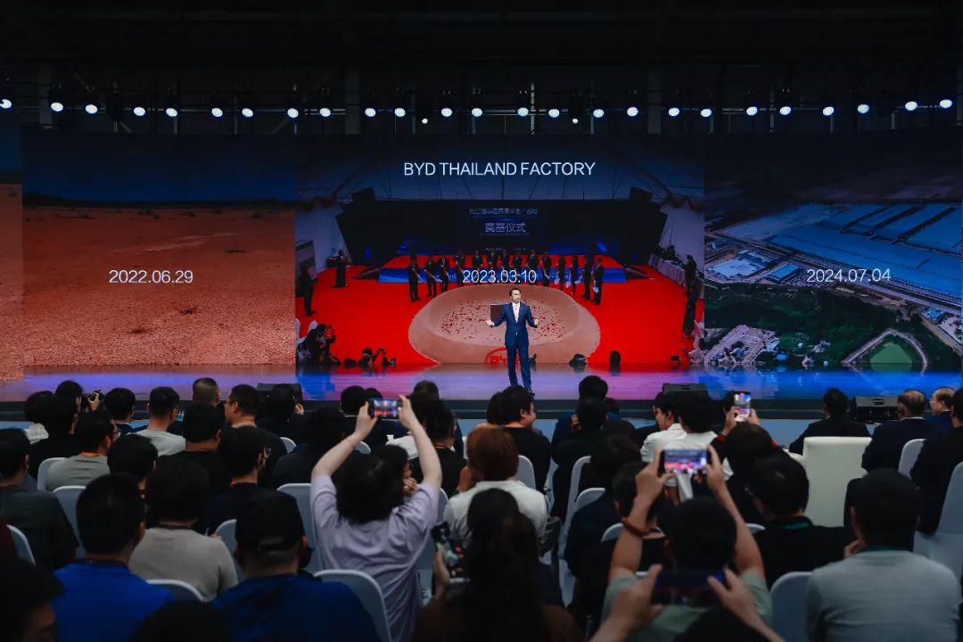 2022年9月8日,比亚迪宣布与泰国WHA伟华工业园区签署购地协议,将在泰国东部经济走廊WHA罗勇36号工业园建设一座乘用车工厂。这是比亚迪在海外的首个乘用车工厂,新工厂占地面积约94.8万平方米,年产能15万辆,满产后可提供约1万个就业岗位,但从开工到投产仅用时16个月。
