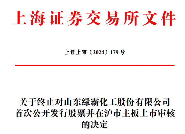 6月27日,上交所消息显示,因山东绿霸化工股份有限公司(以下简称“山东绿霸”)及其保荐人民生证券股份有限公司撤回首次公开发行股票并在主板上市的申请,上交所终止其主板发行上市审核。