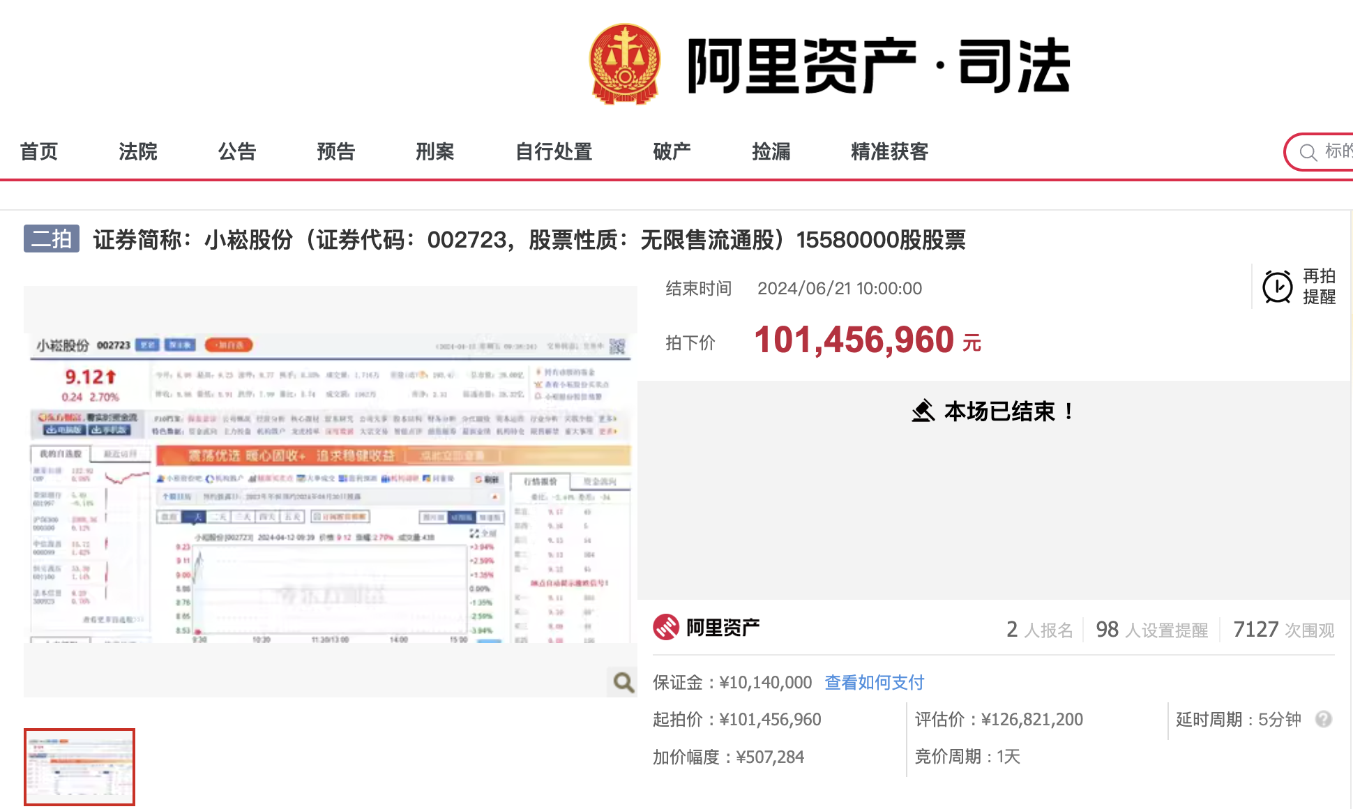 今年3月17日,小崧股份曾公告称,公司控股股东华欣创力所持公司1558万股遭遇司法再冻结,占其持有公司股份总数的31.48%,占公司总股本的4.90%。上述股份被司法冻结的原因主要是其与厦门国际信托有限公司之间的债权债务纠纷。