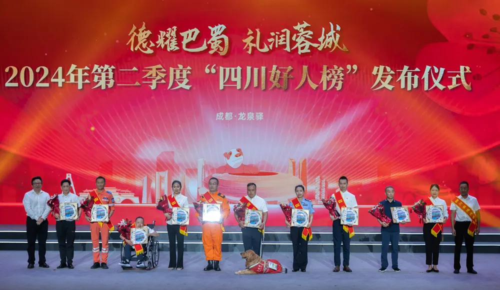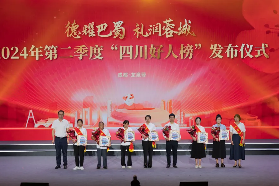 赓续文明血脉,弘扬凡人善举。7月5日,“德耀巴蜀·礼润蓉城”——2024年第二季度“四川好人榜”发布仪式在成都市龙泉驿区举行。经四川各地前期逐级遴选推荐、专家评审、社会公示等程序,41人(组)助人为乐、见义勇为、诚实守信、敬业奉献、孝老爱亲身边好人光荣上榜。