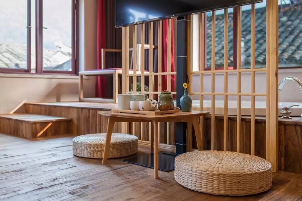 民宿的公共区域也很宽敞,格调更多了份安静。同样将茶文化大量植入,祁门红茶、单枞、铁观音、大红袍……住店客人都可以免费享用。