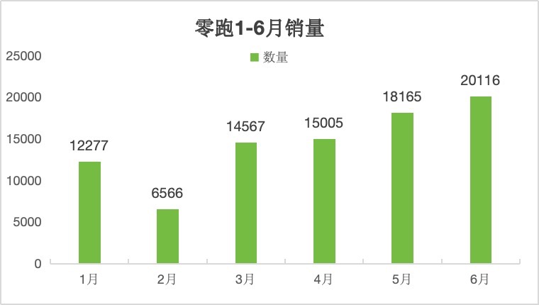 7月1日,零跑汽车公布销量快报,数据显示,今年1-6月零跑汽车累计销量达8.67万辆,同比增长94.8%,其中,6月单月销量超2万辆,同比增长52.3%,创单月历史新高。