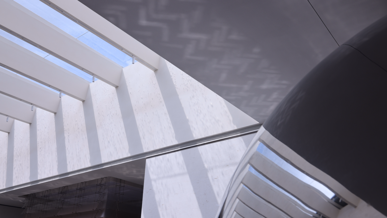 海丝会客厅的内部设计深植于地域性文化土壤,通过极富质感的表达手法,巧妙地将城市的文化基因融入每一寸空间,赋予其层次丰富、变化多样的独特魅力。海丝会客厅的整体规划设计精妙地融合了“丝绸之路”的主题元素与广州深厚的在地文化,巧妙地将珠江的旖旎风貌、文船生活区的历史韵味、祠堂的古朴庄严以及南海神庙的文化底蕴,与现代建筑风貌交织在一起,共同编织出一幅珠江畔独有的、古今交融的文化风情画卷,尽显其独特魅力与文化韵味。