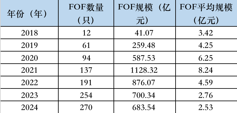 2018年到2021年,养老FOF规模线性上涨,次年较前一年,涨幅均在100%上下。然而近三年,养老FOF规模逐年下降,2023年规模同比减少了175亿元,2024年上半年继续下滑。同时,单只FOF产品的平均规模也在下降,正向2亿元接近。