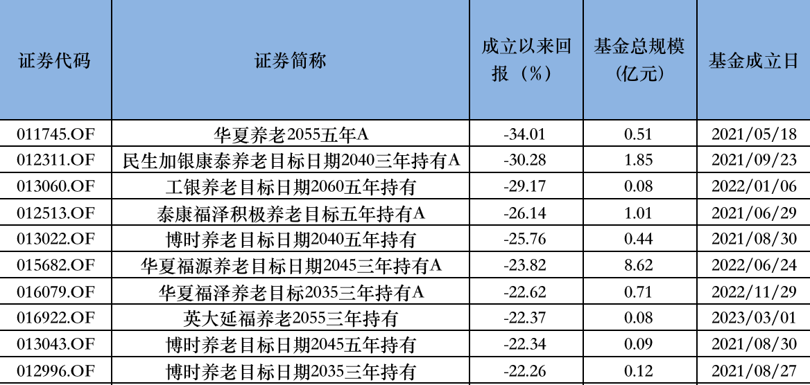 华夏和博时分别有3只养老FOF业绩不佳,规模随业绩下滑,目前规模几乎都不足1亿元。此外,还有民生加银、英大、泰康基金等旗下养老FOF亏损居前。