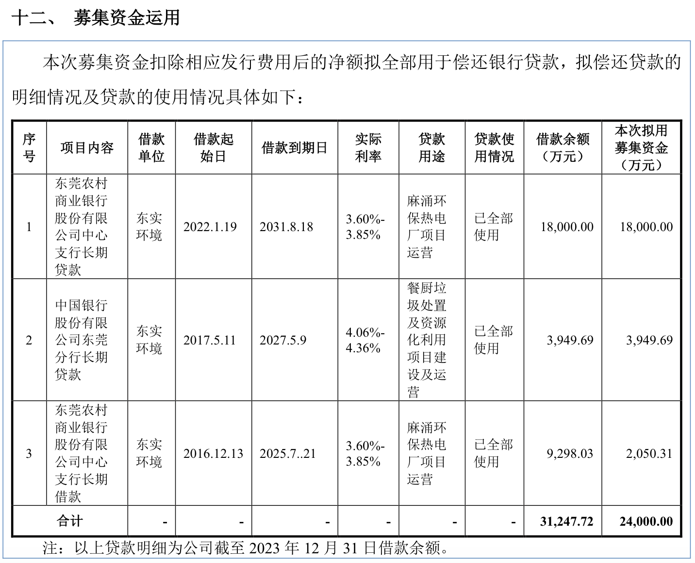 从说明书提供的清单看,东实环境目前正在履行的借款不止如此。