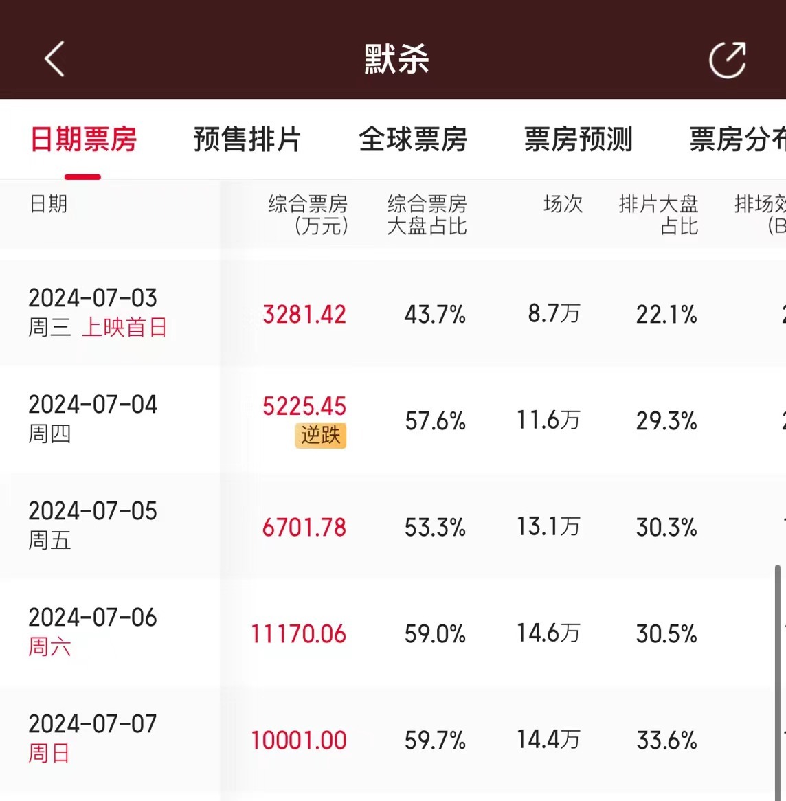 据猫眼专业版数据,截至7月7日20时23分,《默杀》单日票房破亿,已连续2天单日票房破亿,截至当前累计总票房已超3.63亿。