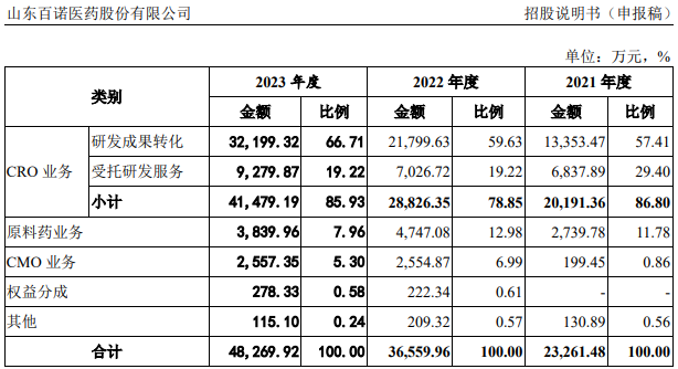 2021年至2023年,百诺医药旗下CRO业务收入占主营业务收入的比例分别为86.8%、78.85%和85.93%。