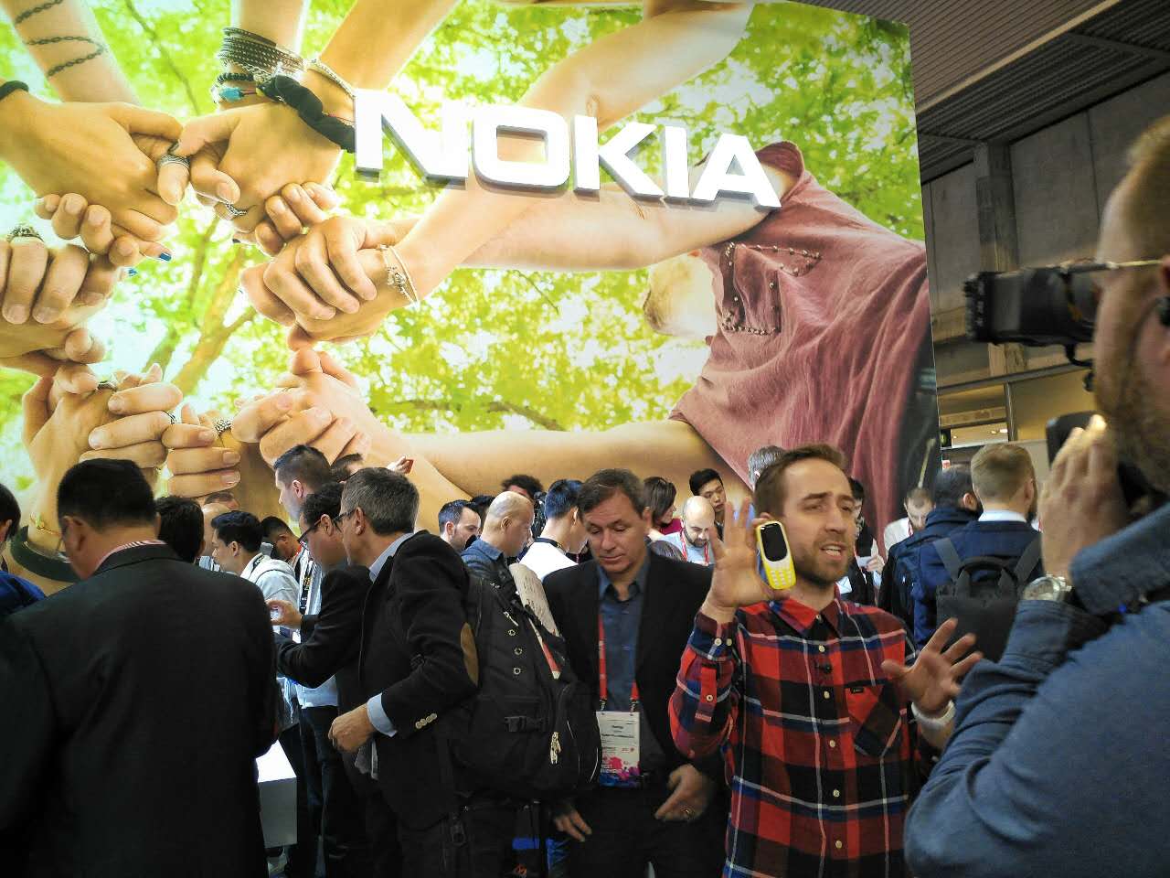 另一个抢风头的是诺基亚。本来消失在人们视线之中的诺基亚今年发布了3、5、6三款机型以及3310复刻版。其中经典款3310最受人们关注和喜爱,经过展台时不时见到有人拿着小小的3310端详和把玩。