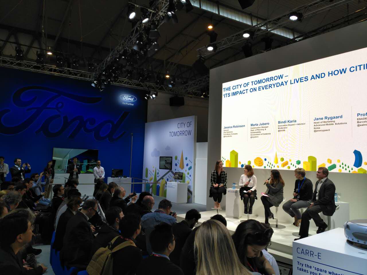 除了这些常见面孔,这届MWC上最出风头的还有各大大胆涉足科技领域的汽车厂商。比如,奔驰大打无人驾驶牌。