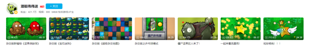 《杂交版》的开发者B站UP主“潜艇伟伟迷”,通过脑洞大开的杂交植物设计,让这款二创作品吸引了众多玩家的关注,其游戏视频在抖音平台的播放量达几十亿,作者B站的粉丝数量在三个月内增加了近400万,他本人也被玩家戏称为“赛博孟德尔”。